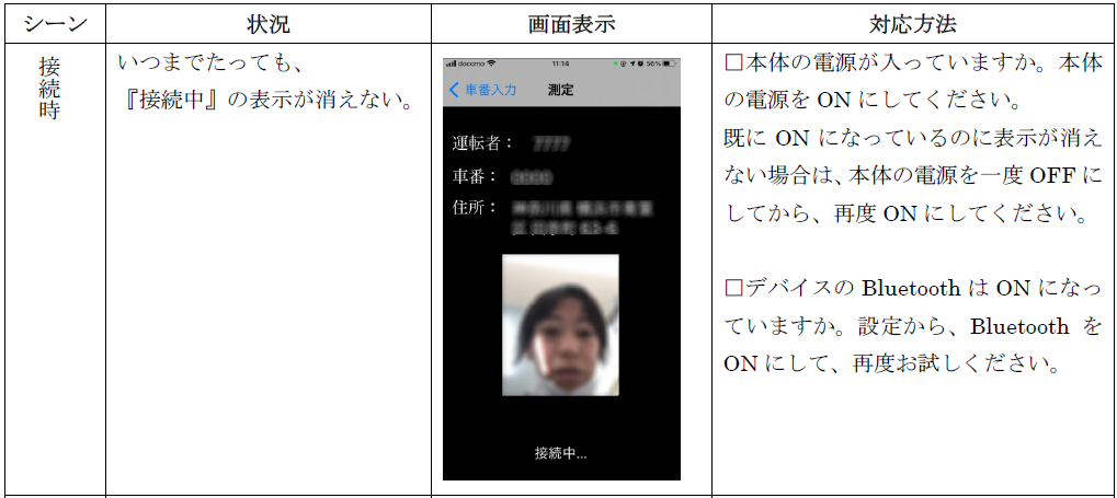 電源が入っている状態でも『接続中』の表示が消えない場合は、デバイスの Bluetooth は OFFになっている場合がございます。デバイスの設定から、Bluetooth をONになっているか確認し、再度お試しください。
